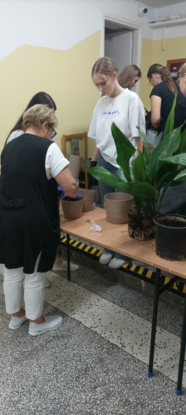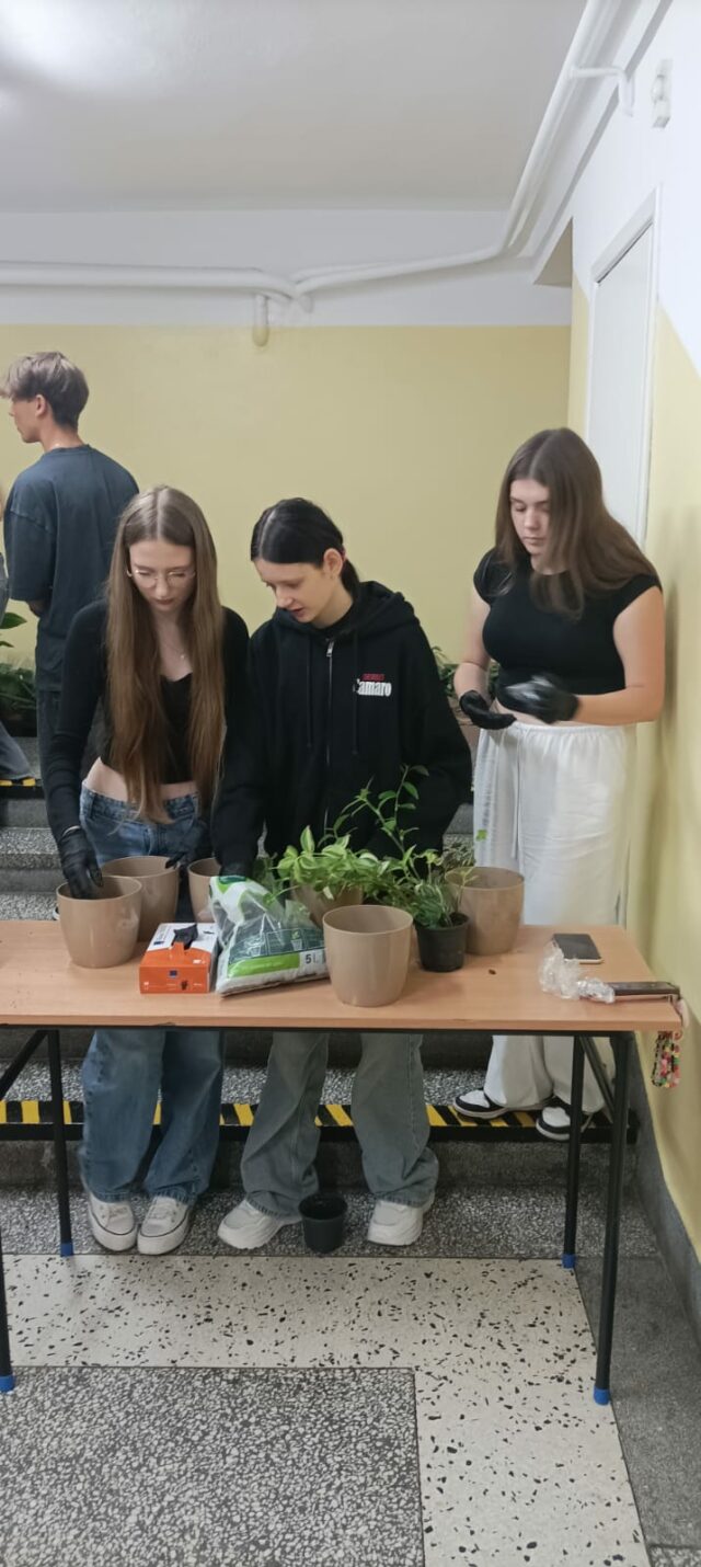Dnia 22.09.2925 w ZSP Żabno odbyła się akcja „Zielona szkoła”, w ramach projektu „Bądź EKO 6- kształtowanie postaw proekologicznych wśród uczniów”, realizowanego w ramach Programu Priorytetowego „Edukacja Ekologiczna” ze środków Wojewódzkiego Funduszu Ochrony Środowiska i Gospodarki Wodnej w Krakowie, przy udziale wkładu własnego Powiatu Tarnowskiego. Udział w akcji wzięła dwunastoosobowa grupa uczniów z 3 klasy technikum gastronomicznego, nad którą opiekę sprawował szkolny koordynator projektu Pani Katarzyna Żołądź. Uczniowie posadzili 58 sztuk 8 gatunków sadzonek roślin doniczkowych, które dzięki swym przepięknym walorom estetycznym, będą upiększać sale lekcyjne oraz pozostałe pomieszczenia budynku szkolnego. Zrealizowane przedsięwzięcie miało również wymiar dydaktyczny- uczniowie zostali zapoznani z praktycznymi czynnościami, jakie należy wykonać podczas sadzenia roślin. Samodzielnie wyszukali informacji dotyczących podstawowych wymagań życiowych , jakie posiadają posadzone gatunki i sporządzili notatki, którymi będą posługiwać się uczniowie zajmujący się pielęgnacją roślin w budynku. Zajęcia praktyczne wzbogacone zostały o treści teoretyczne z zakresu znaczenia flory w przyrodzie, w aspekcie ekologicznym tj. ochrony atmosfery przed zanieczyszczeniami i obiegu materii. Celem powyższych działań jest kształtowanie u młodych ludzi postawę przekonania o konieczności umieszczania roślin we wnętrzach budynków, jako nie tylko dawcy tlenu, ale również elementu podnoszącego jakość powietrza. Właściwie prowadzona pielęgnacja roślin, powinna uczyć młode pokolenia odpowiedzialności za żywe organizmy oraz pomóc w budowaniu pozytywnych i jakże ważnych w dzisiejszych czasach nawyków dbania o przyrodę.