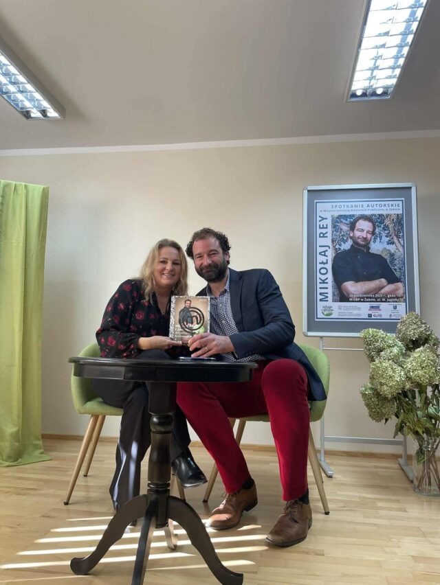 20 października 2025 roku uczniowie klas technikum gastronomicznego naszej szkoły wzięli udział w wyjątkowym spotkaniu z Mikołajem Reyem – znanym kucharzem, uczestnikiem pierwszej edycji programu MasterChef, a także prowadzącym kulinarne cykle w Dzień Dobry TVN. Wydarzenie miało miejsce w Miejsko-Gminnej Bibliotece Publicznej w Żabnie i było nie tylko inspirującym doświadczeniem, ale także okazją do zdobycia cennych wskazówek od doświadczonego praktyka kuchni francuskiej i polskiej.