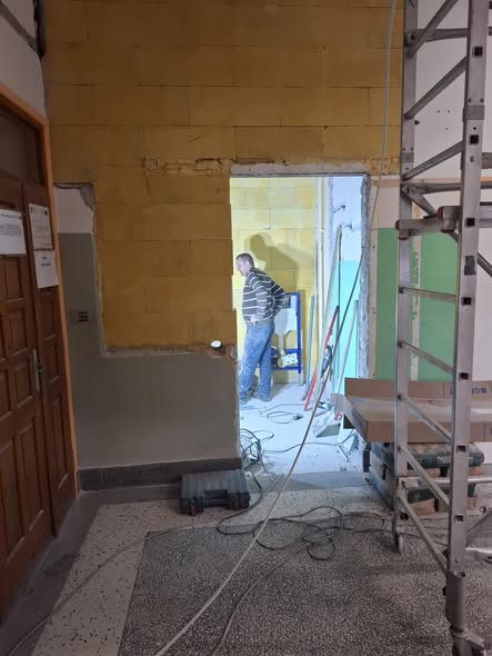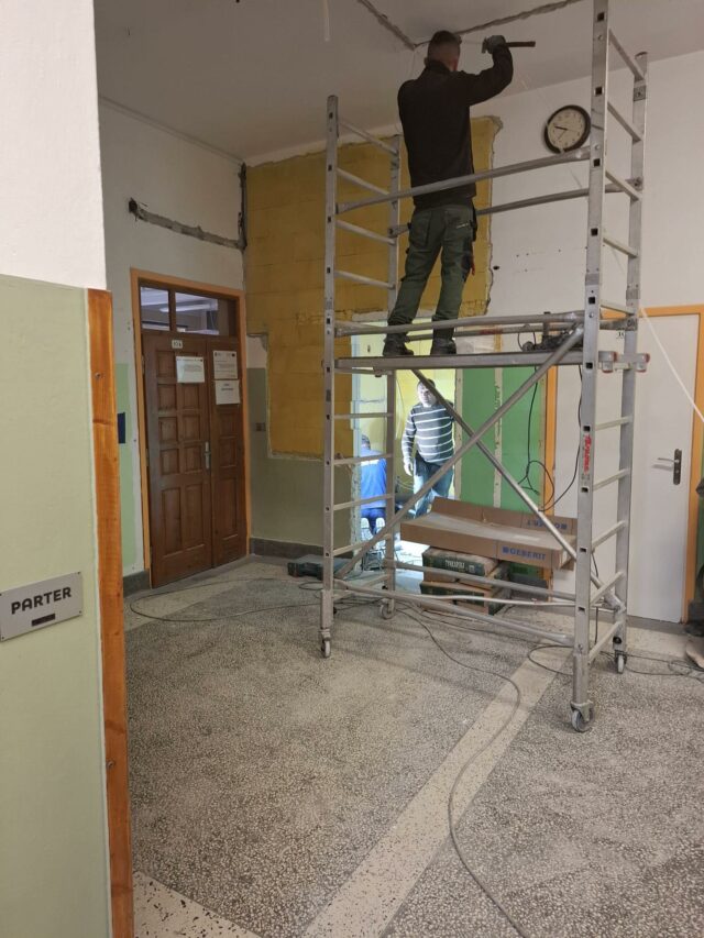 realizowany jest remont szkoły m.in. pod kątem dostosowania budynku dla potrzeb osób niepełnosprawnych. Patrząc na zdjęcia z wnętrza szkoły zastanawiamy się jak tu bedzie pieknie skoro teraz jest tak…