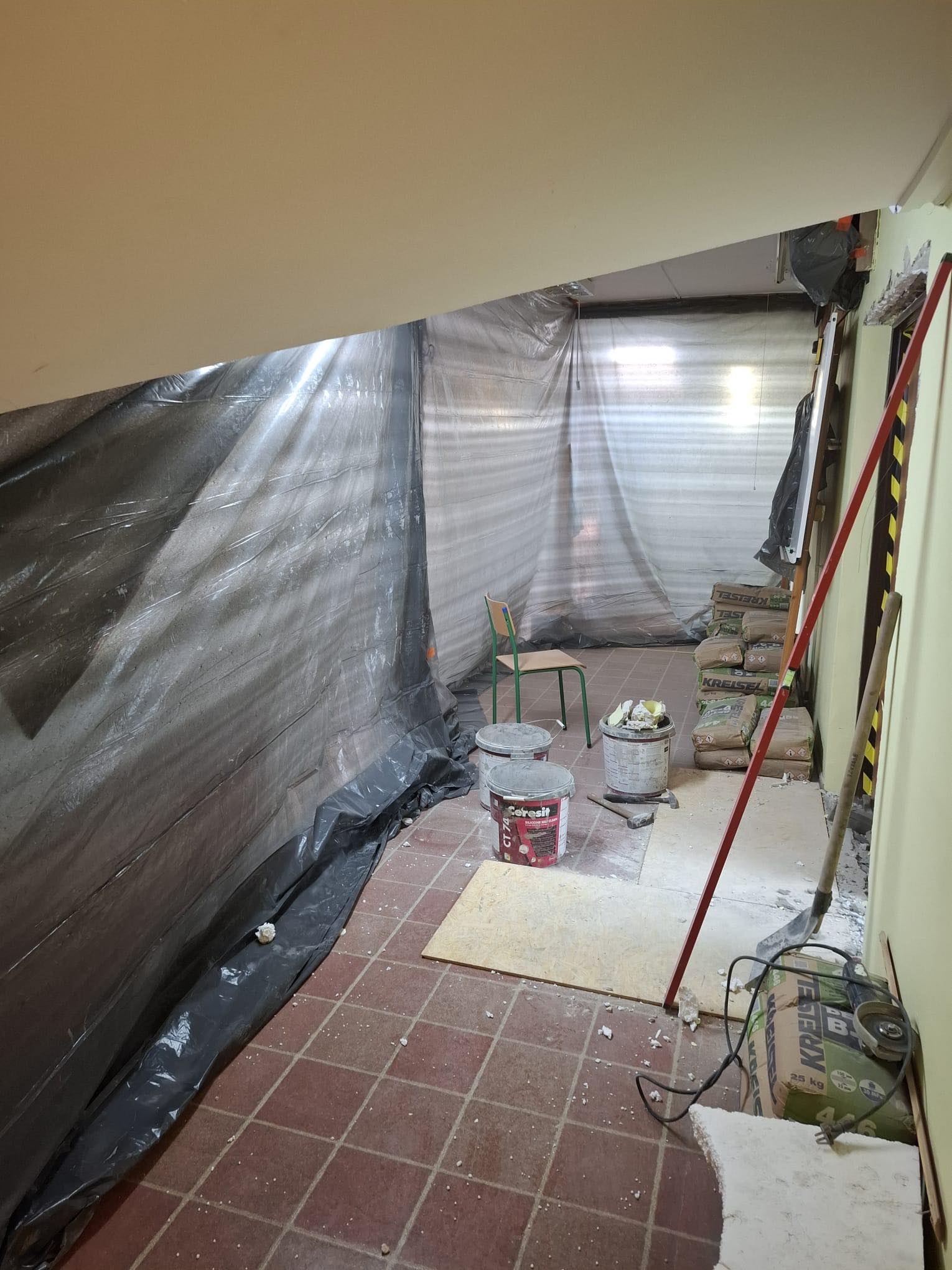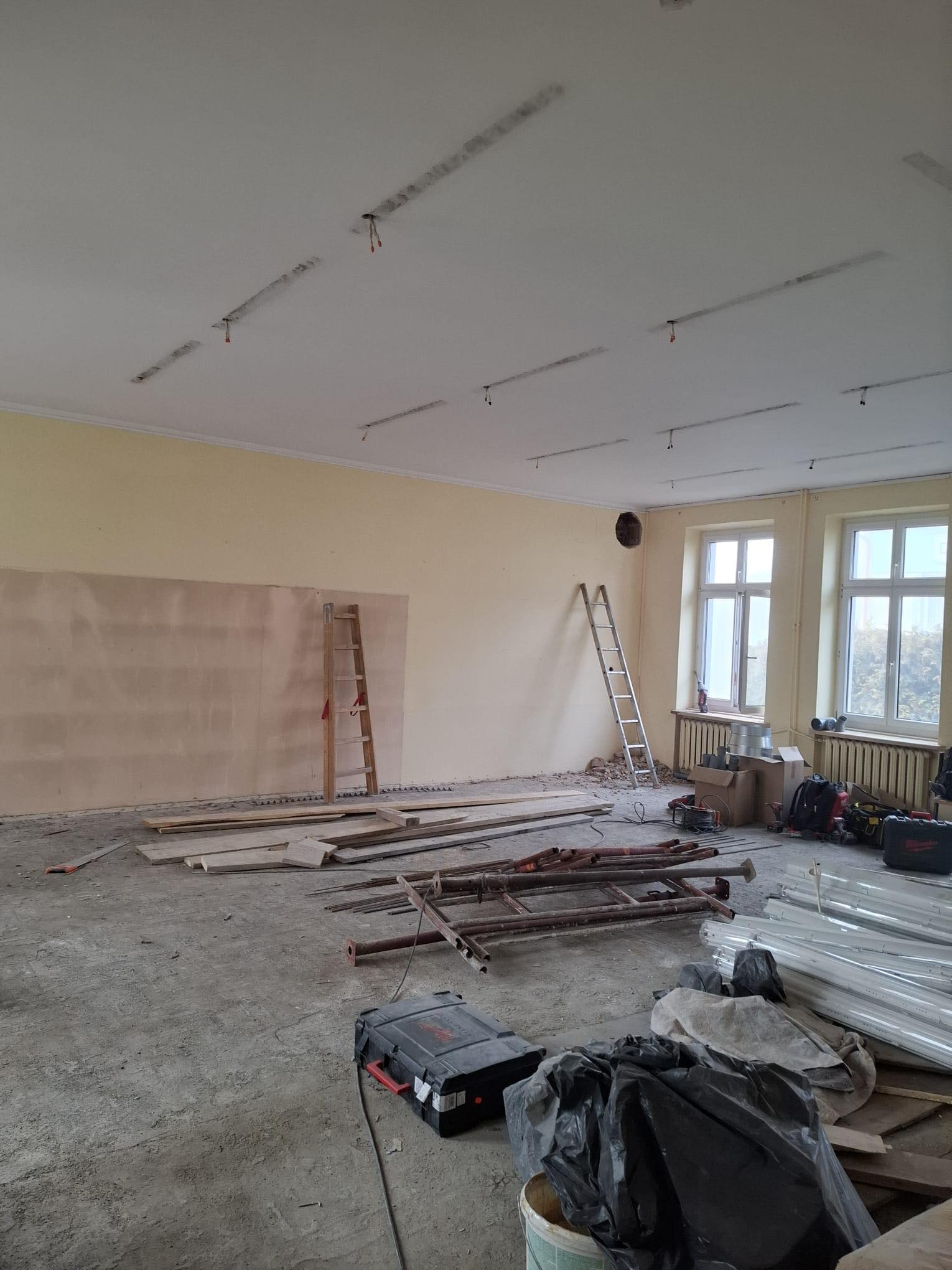 realizowany jest remont szkoły m.in. pod kątem dostosowania budynku dla potrzeb osób niepełnosprawnych. Patrząc na zdjęcia z wnętrza szkoły zastanawiamy się jak tu bedzie pieknie skoro teraz jest tak…