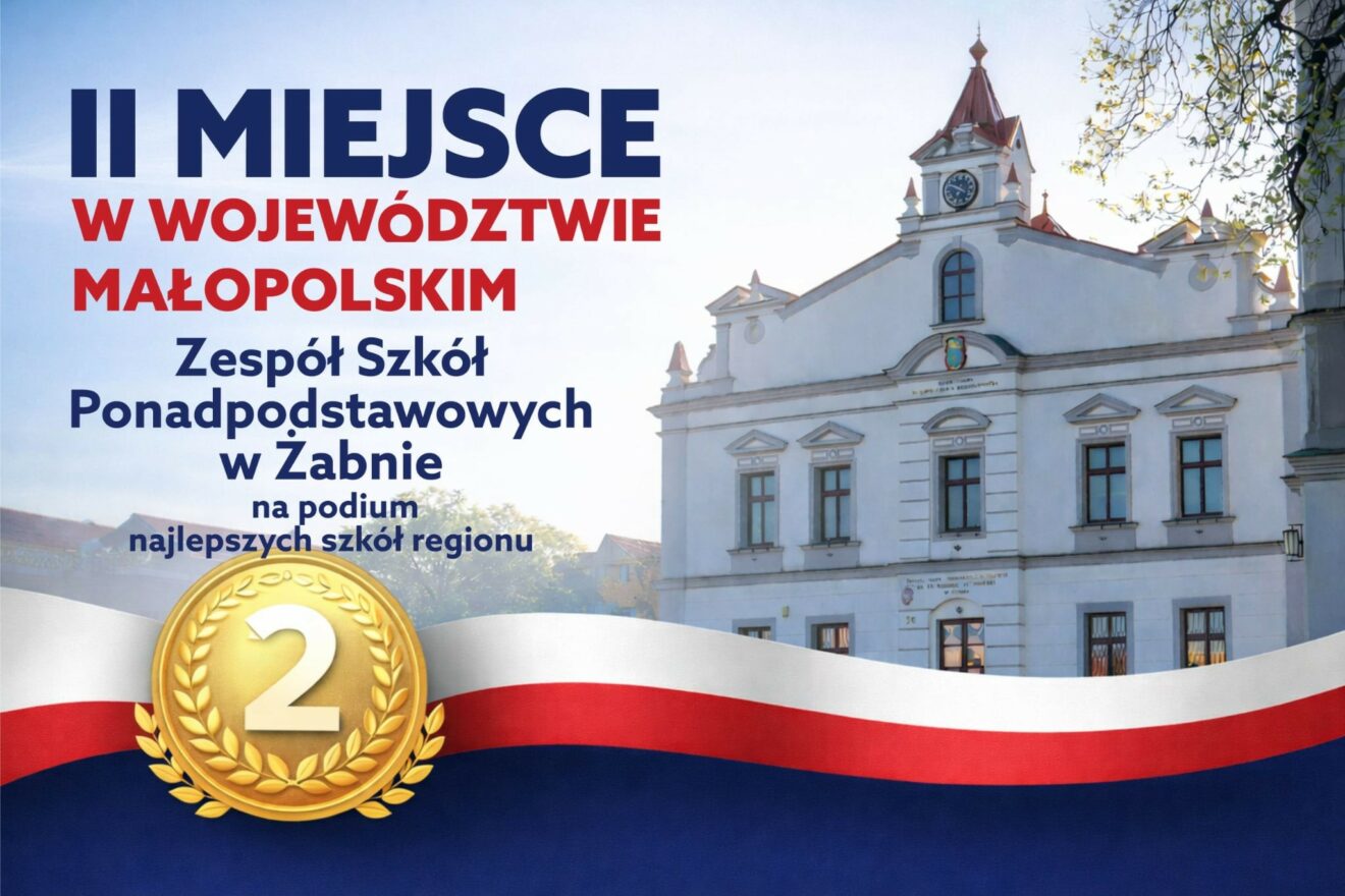 Z ogromną przyjemnością informujemy, że Zespół Szkół Ponadpodstawowych w Żabnie odniósł wyjątkowy sukces w Plebiscycie Edukacyjnym 2025 organizowanym przez Gazetę Krakowską. Po zdobyciu I miejsca jako najlepsza szkoła w powiecie tarnowskim nasza szkoła potwierdziła swoją wysoką pozycję także na etapie wojewódzkim, zajmując II miejsce w całym województwie małopolskim.