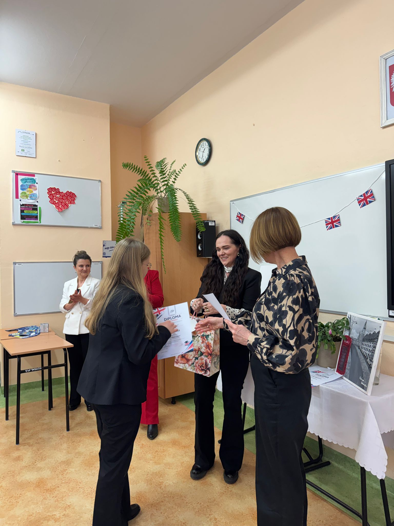 Uroczystego wręczenia nagród dokonała Pani Dyrektor Agnieszka Kurzydym, która pogratulowała wszystkim uczniom ich wiedzy oraz swobody w posługiwaniu się językiem angielskim. Laureatką pierwszego miejsca została Julia Jasek ze szkoły w Niedomicach, drugie miejsce zajął Mateusz Kocik reprezentujący szkołę w Niwce, natomiast trzecie miejsce przypadło Ewie Migdał ze szkoły w Ilkowicach. Finaliści zostali uhonorowani atrakcyjnymi kartami podarunkowymi oraz upominkami w postaci słodkości, a wszyscy biorący udział w konkursie otrzymali pamiątkowe dyplomy uczestnictwa.