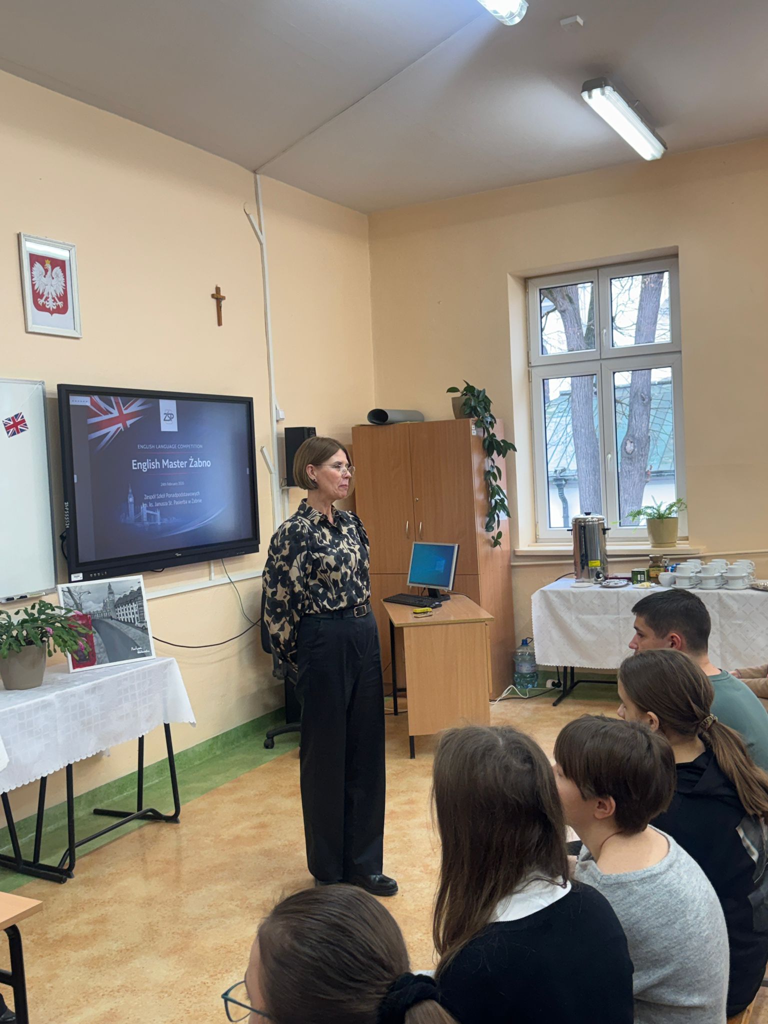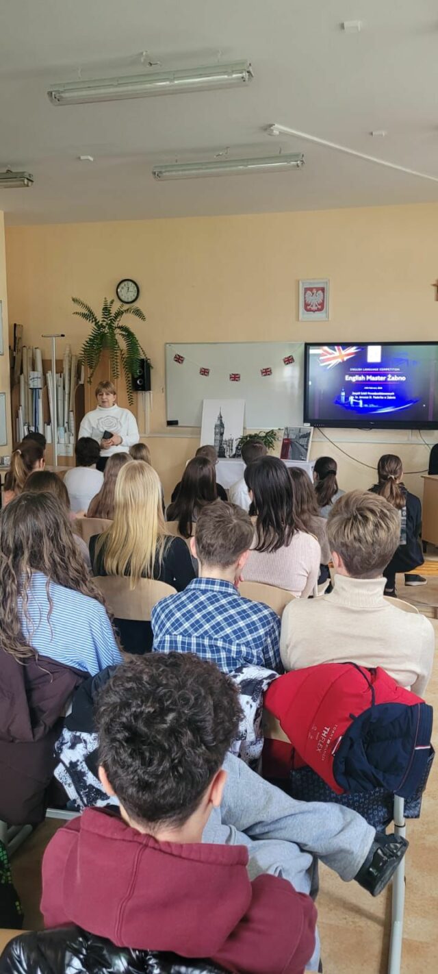 W dniu 24 lutego 2026 roku w murach naszej szkoły odbył się konkurs języka angielskiego dla szkół podstawowych pod nazwą „English Master Żabno”. Wydarzenie zgromadziło 44 utalentowanych uczestników, którzy przybyli wraz ze swoimi opiekunami, aby zmierzyć się w wymagającym teście leksykalno-gramatycznym. Uczestnicy wykazali się bardzo dobrą znajomością struktur językowych oraz szerokim zakresem słownictwa, a całe zmagania przebiegały w niezwykle miłej i spokojnej atmosferze.