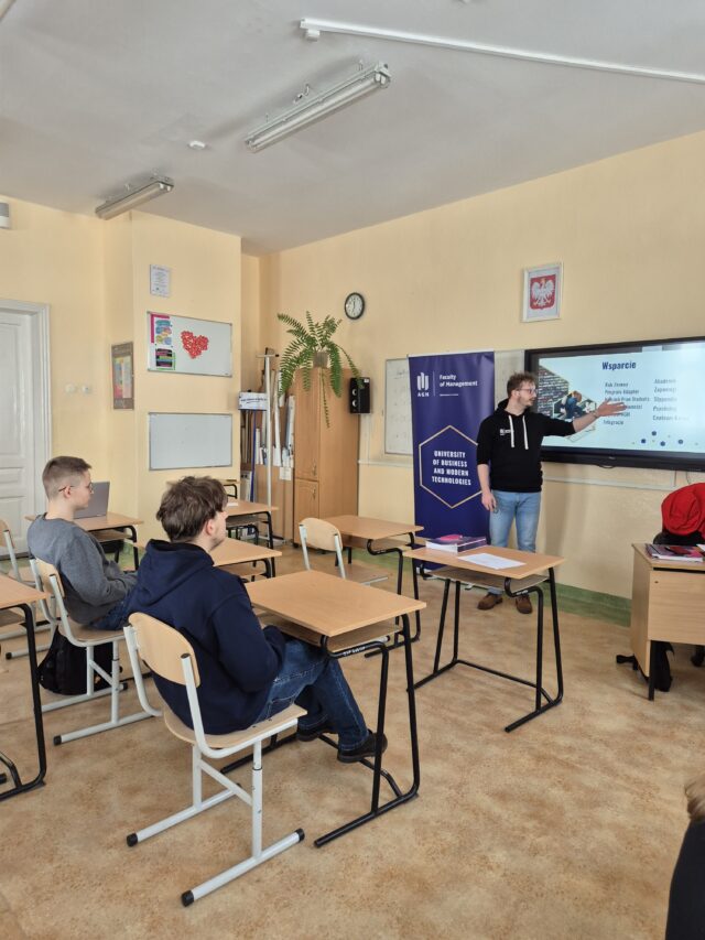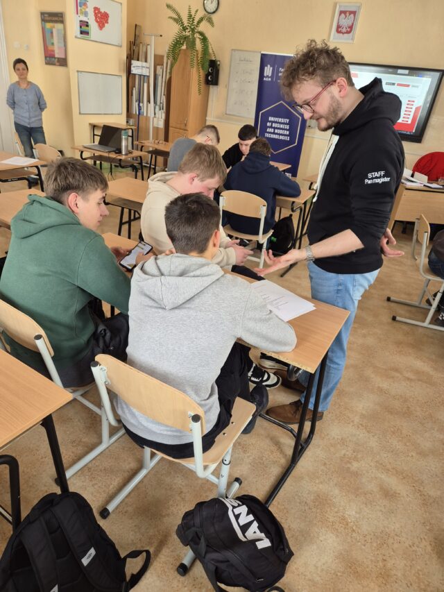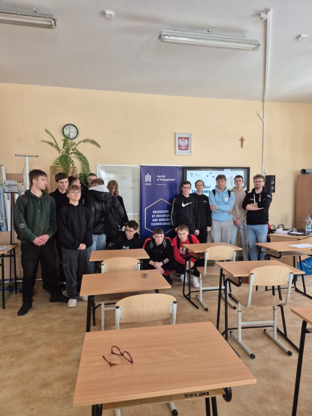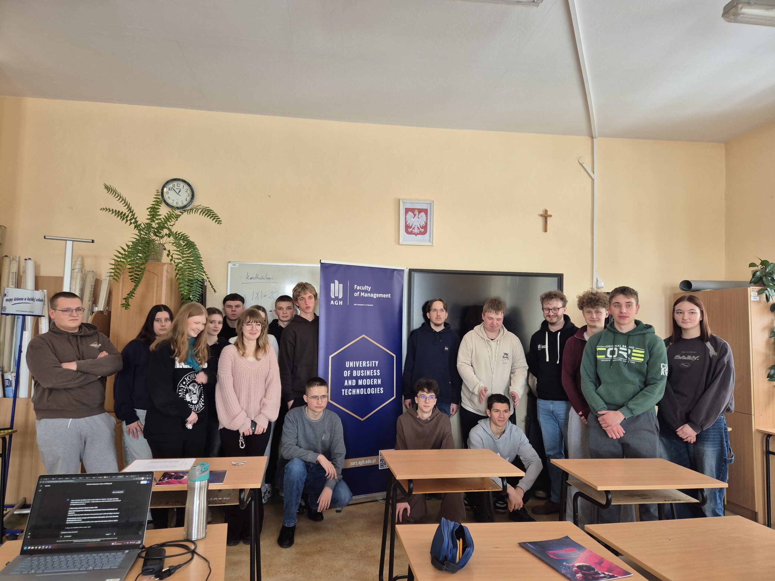 17 lutego br. uczniowie klasy 4 TI oraz 4 TEP uczestniczyli w spotkaniu z przedstawicielem Akademia Górniczo-Hutnicza im. Stanisława Staszica w Krakowie. Podczas zajęć edukacyjnych młodzież wzięła udział w warsztatach pt. „Gra biznesowa”, które pozwoliły im w praktyczny sposób rozwinąć umiejętności z zakresu przedsiębiorczości, pracy zespołowej oraz podejmowania decyzji.