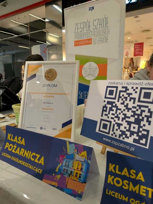 Uczniowie oraz nauczyciele Zespołu Szkół Ponadpodstawowych w Żabnie wzięli udział w targach edukacyjnych, które odbyły się w Galerii Tarnovia w Tarnowie. Wydarzenie zgromadziło liczne szkoły ponadpodstawowe z regionu, dając uczniom kończącym szkoły podstawowe i ich rodzicom możliwość zapoznania się z ofertą edukacyjną placówek.