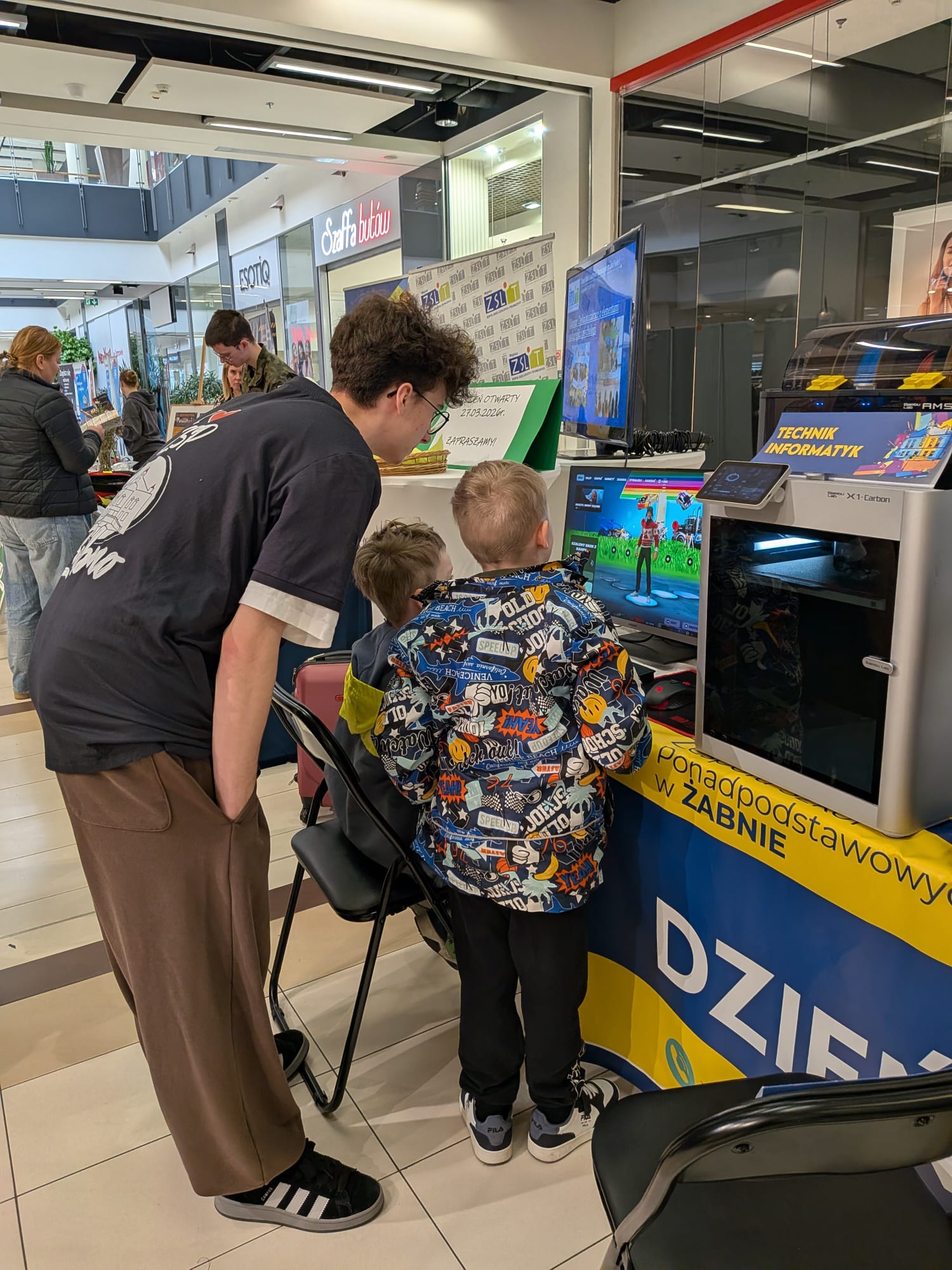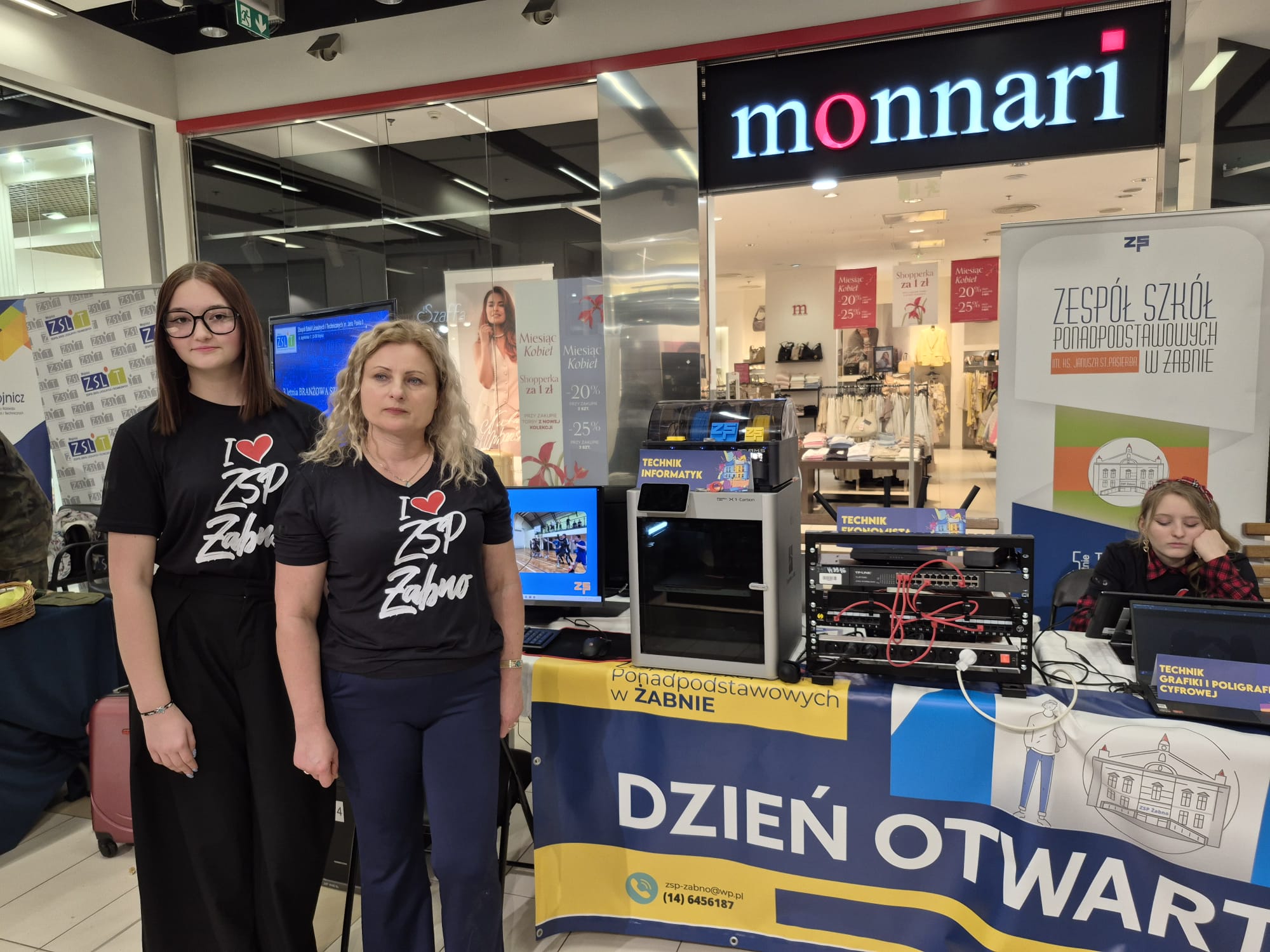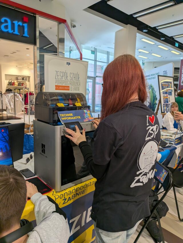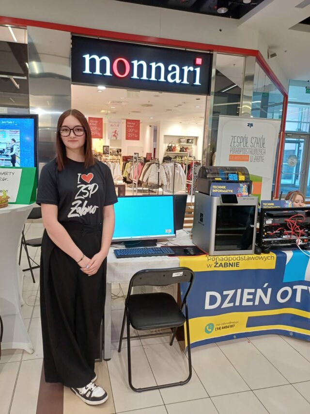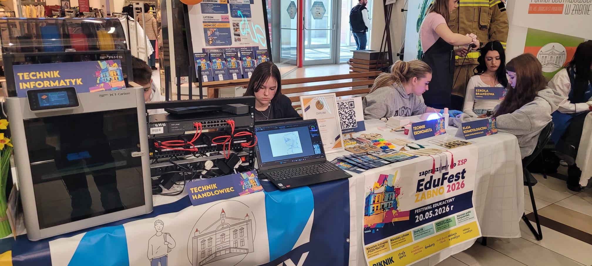 Stoisko szkoły z Żabna cieszyło się dużym zainteresowaniem odwiedzających. Prezentowane na nim były wszystkie proponowane na rok szkolny 2026/2027 kierunki kształcenia. Uczniowie i nauczyciele opowiadali o codziennym życiu szkoły oraz odpowiadali na pytania dotyczące rekrutacji. Nie zabrakło również materiałów informacyjnych, a także przykładów projektów i osiągnięć uczniów.