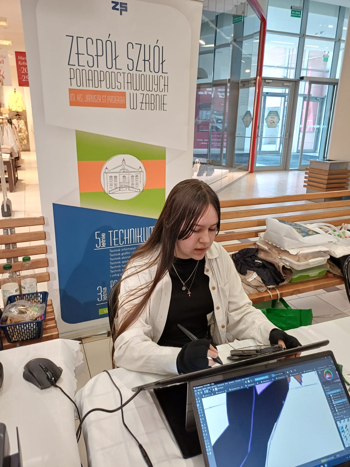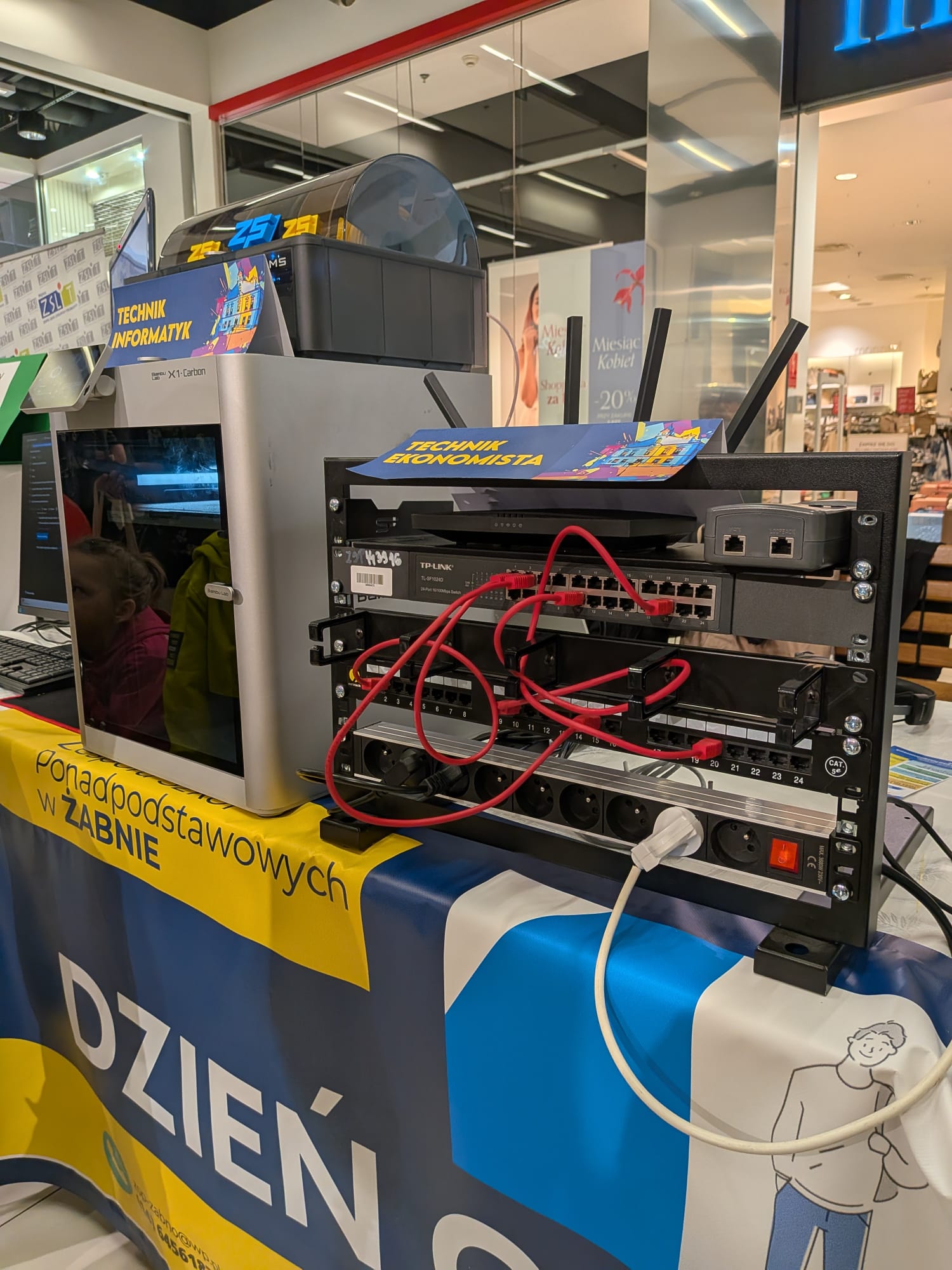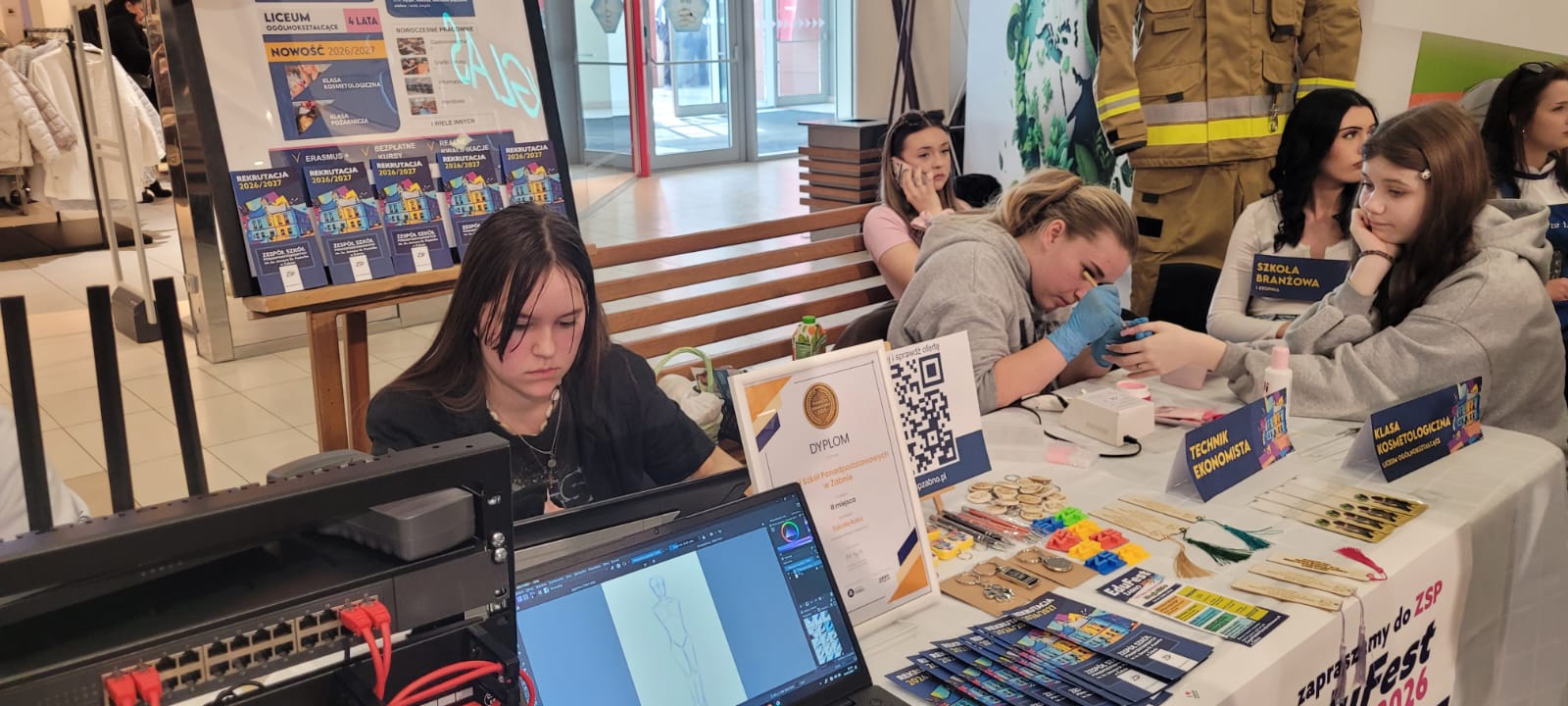 Stoisko szkoły z Żabna cieszyło się dużym zainteresowaniem odwiedzających. Prezentowane na nim były wszystkie proponowane na rok szkolny 2026/2027 kierunki kształcenia. Uczniowie i nauczyciele opowiadali o codziennym życiu szkoły oraz odpowiadali na pytania dotyczące rekrutacji. Nie zabrakło również materiałów informacyjnych, a także przykładów projektów i osiągnięć uczniów.